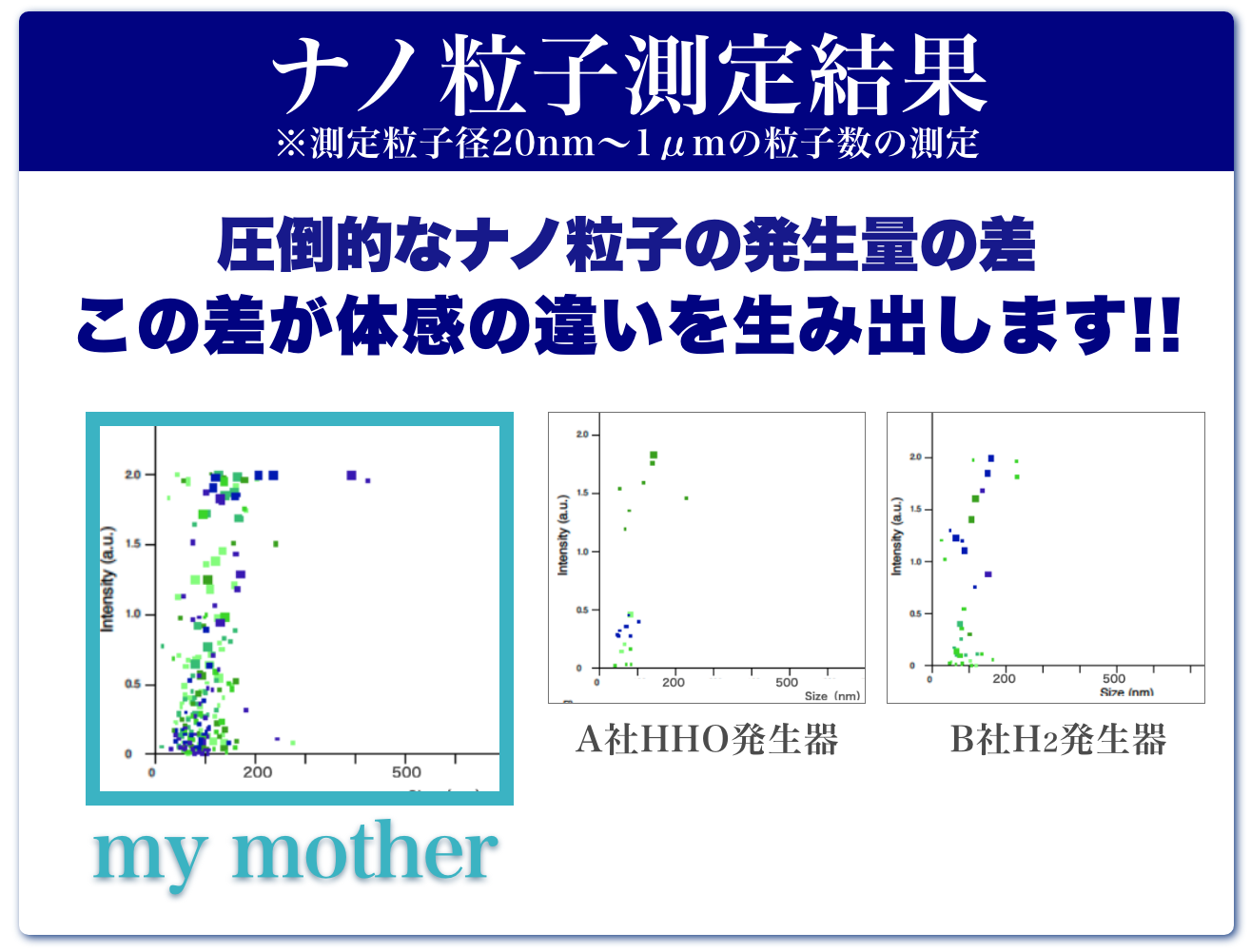 my mother(m.m.)の要は電極とセルの構造です。水素酸素ガスを発生させる電極のセル方式は、ウェットセル方式とドライセル方式の2種類がありますが、弊社ではコンパクトな大きさを実現するためにドライセル方式を採用しています。以前からの研究でHHOガスを発生させるのにドライセル方式が理想的と言われてきましたが、高度な開発技術が求められるため、従来の製品のほとんどがウェットセル方式を採用していました。しかし、弊社の開発チームの研究と技術力の成果によりドライセル方式での製品化に成功しました。そのため、my mother(m.m.)は持ち運びできるほどの超軽量でありながら1分間に700cc~4000ccという超大量の水素酸素ガス(HHOガス)を発生させることが可能です。コンパクトさとパワフルさを両立することで、プロだけでなくご家庭でも利用されています。