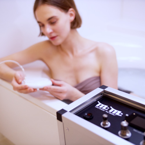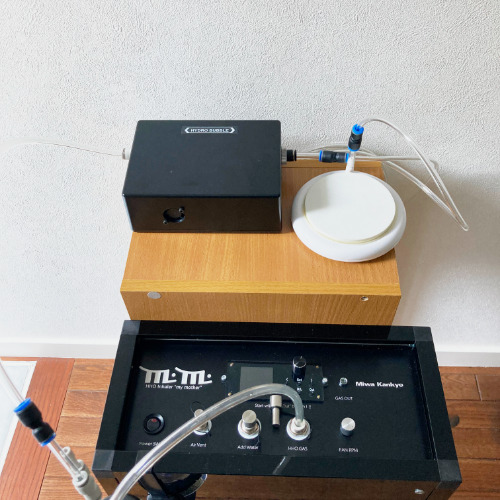 水素酸素吸入器に水素バス用ポンプ “HYDRO BUBBLE”を取り付け、浴槽用セラミックを取り付けて、浴槽に水素酸素を送り込むことで、低い酸化還元電位の高濃度水素酸素バスをお楽しみいただけます。